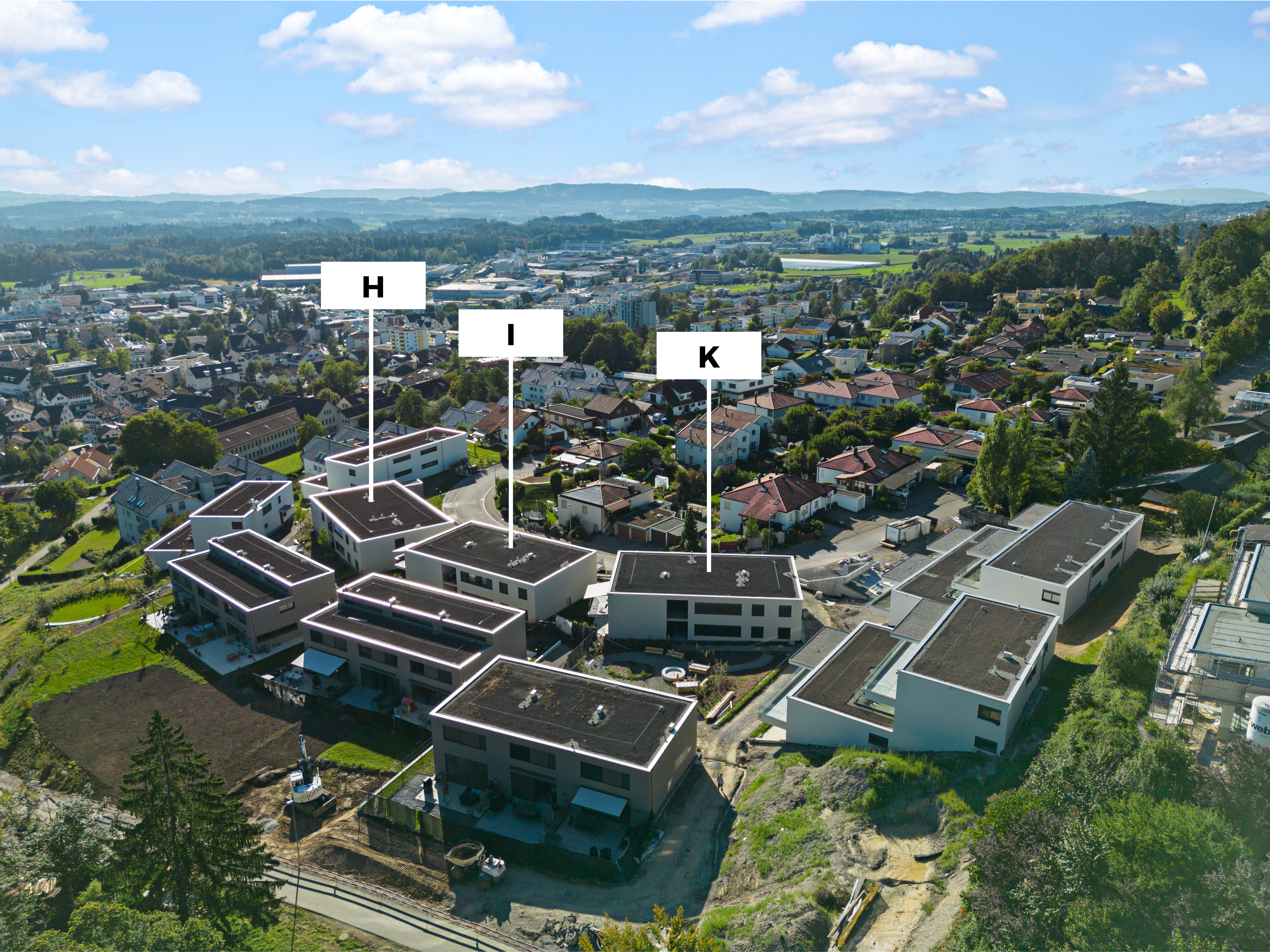 Im Zentrum der Überbauung stehen die drei Mehrfamilienhäuser H, I und K, welche mit modernen und zeitlosen Mietwohnungen ausgebaut wurden. Der Eichenparkett in den Schlaf- und Wohnräumen spendet viel Wärme und sorgt für ein tolles Wohlfühlambiente.